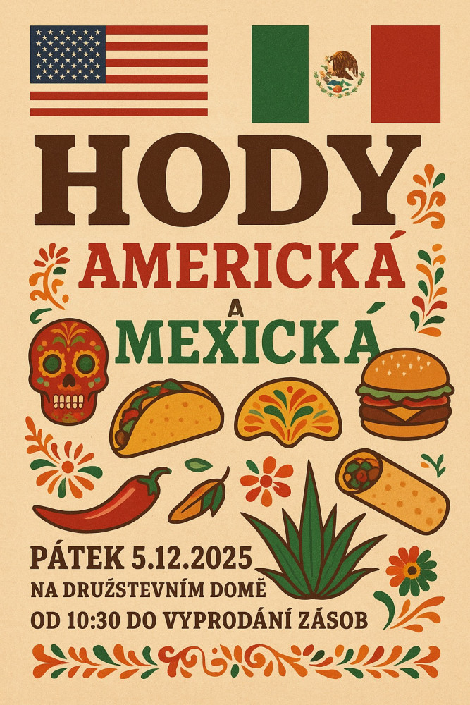Zveme Vás na mexicko-americké hody. Tento víkend jsme si pro vás připravili mexickou a americkou kuchyni.