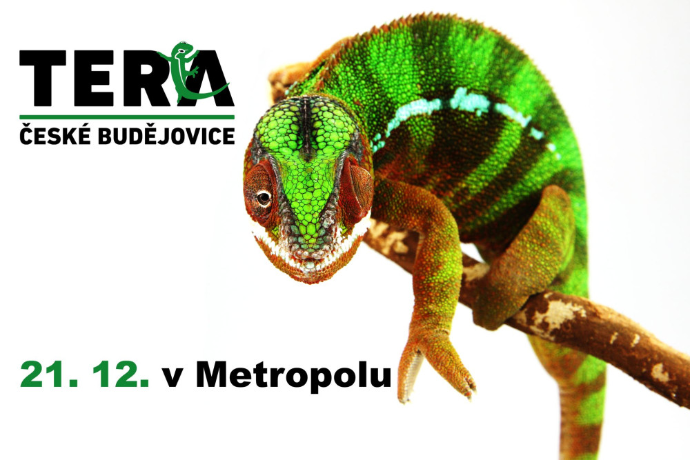 TERA České Budějovice je prodejní výstava zaměřená na výměnu a prodej terarijních zvířat, akvarijních ryb, živého a preparovaného hmyzu, živého a neživého krmiva, rostlin, přírodnin a chovatelských potřeb. V neděli 21. 12. 2025 od 9:00 do 12:00. Sál je plně obsazen, nahlášení jsou i akvaristé a k dispozici budou nové plakáty a kapesní kalendáře s termíny na příští rok!