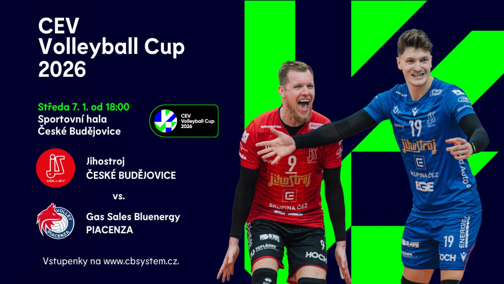 Velký svátek volejbalu se chystá na jihu Čech po Novém roce. Jihostroj narazí v dalším kole evropského Poháru CEV na italskou Piacenzu, která patří k nejlepším týmům na světě. Zajistěte si vstupenky co nejdříve – českobudějovická Sportovní hala bude zaplněná do posledního místa!