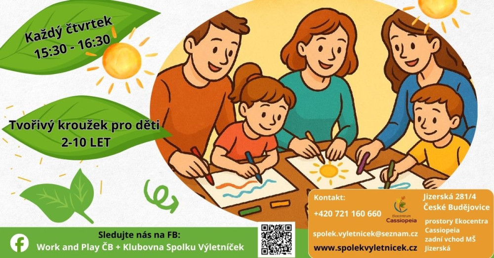 Děti si vyzkouší malování, lepení, stříhání a práci s různými materiály i technikami – prostě hravé tvoření pro malé i větší šikulky!