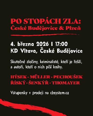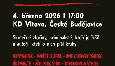 Beseda s podtitulem Skutečné zločiny z jihu Čech 2 přiblíží nejzávažnější kriminální případy regionu i zkušenosti lidí, kteří se na jejich vyšetřování podíleli. Program nabídne pohled do zákulisí práce kriminalistů a naváže na knižní projekt mapující skutečné zločiny z jižních Čech - Budějovická mordparta.
