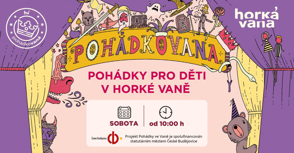 Pohádkovaná v Horké vaně je už tradicí! Letos již po 7. jsme pro vás připravili rekordních 20 pohádek – každou sobotu dopoledne od října do března. Pohádky jsou určeny dětem ve věku 2–12 let, ale často pobaví rodiče i prarodiče. A zatímco děti sledují princezny, čerty a vodníky, vy si můžete vychutnat kávu ve vedlejší Horké vaně.