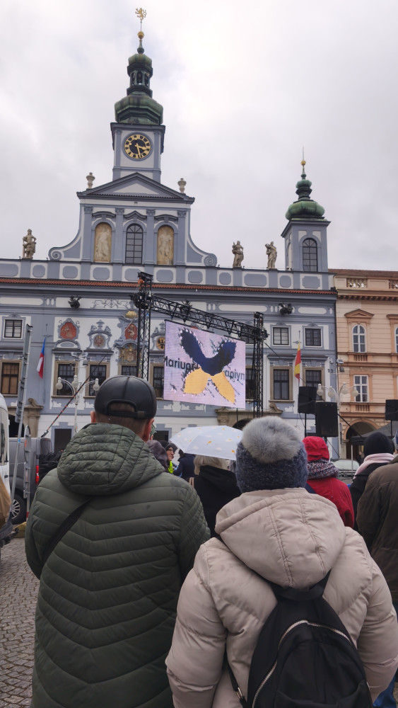 Společně za Ukrajinu. V Budějovicích si stovky lidí připomněly výročí invaze