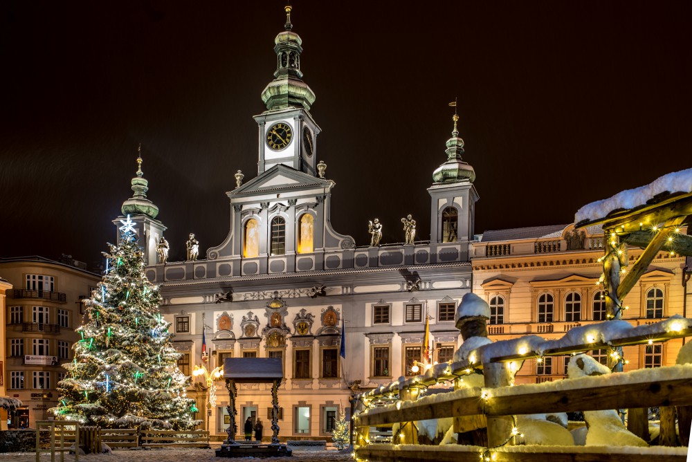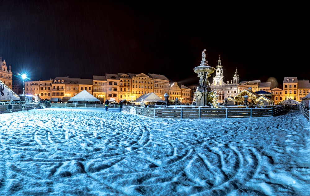Noční České Budějovice pod sněhem 2017