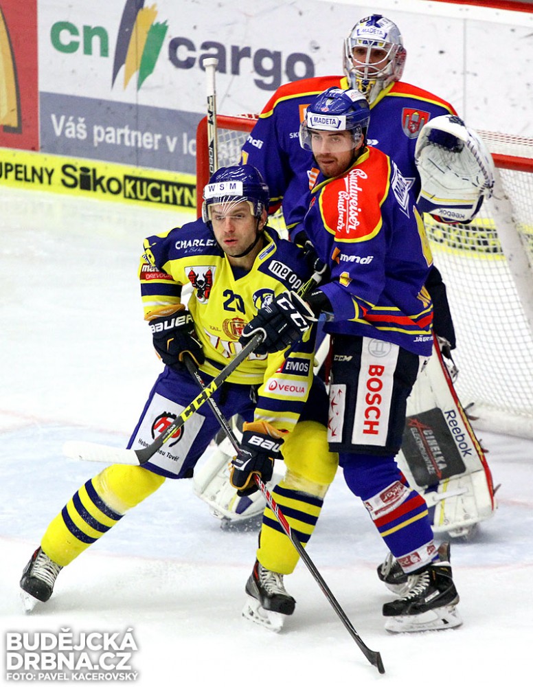 Dušan Žovinec brání před Bláhou Tomáše Sýkoru