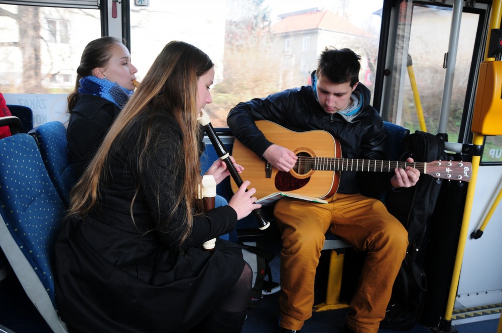Cestující v MHD potěší vánoční hudba