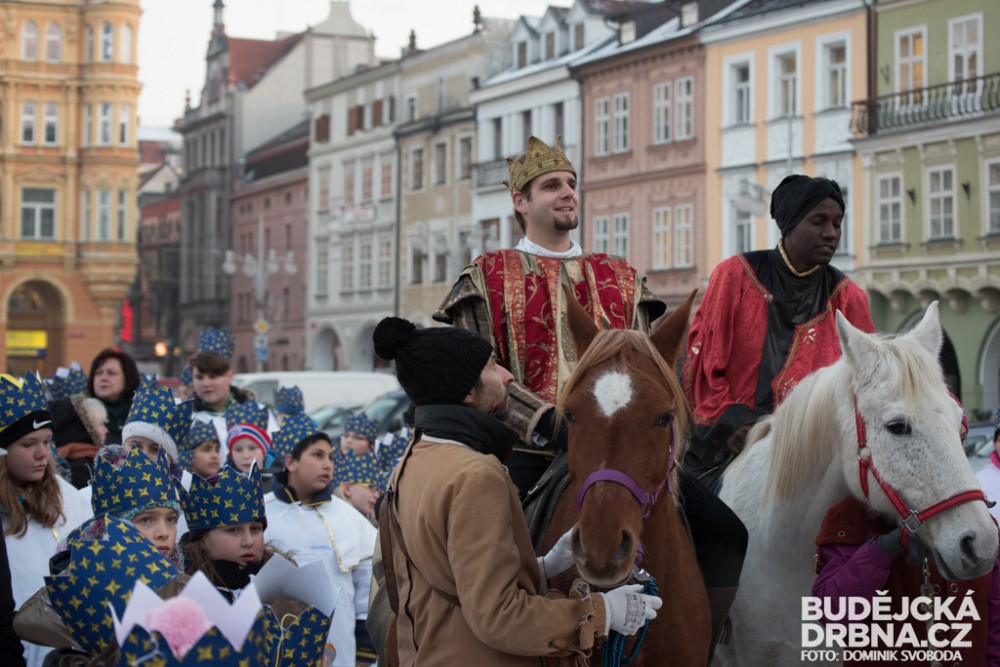 FOTO: Příjezd Tří králů na budějcké náměstí udělal symbolickou tečku za vánočním obdobím