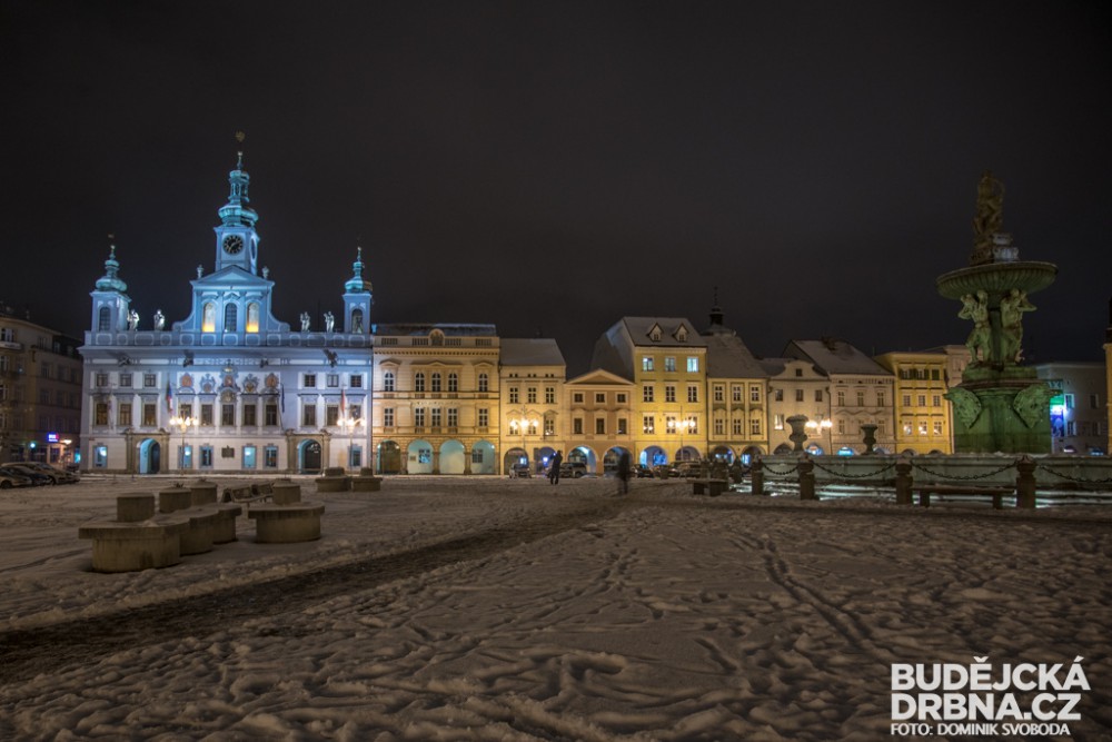Noční zasněžené České Budějovice
