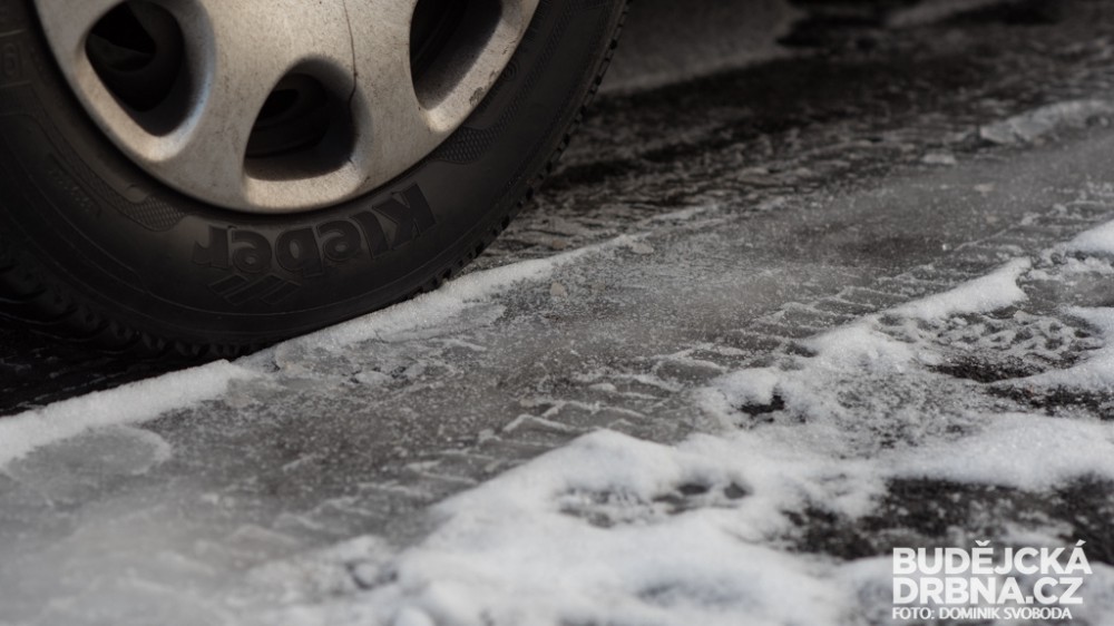 Kvůli ledovce skončil ve strouze kamion u Kaplice