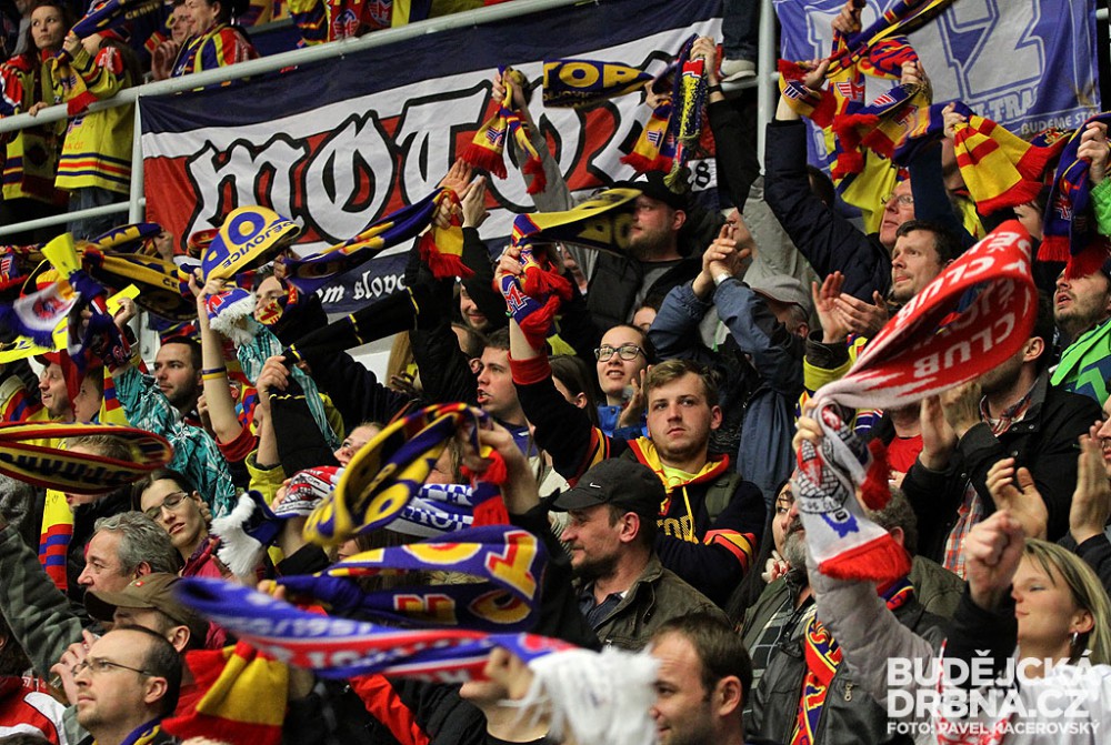 Fanoušci Motoru slaví vyrovnávací branku na 4:4