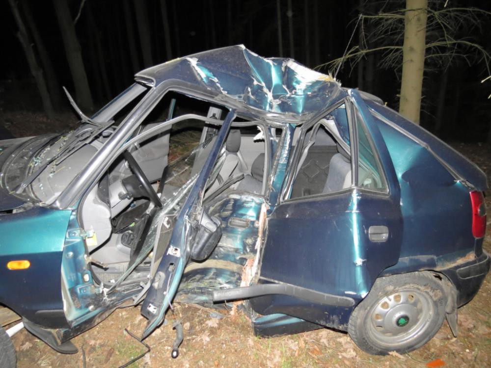 Další vyhaslý život na jihočeských silnicích. Řidič nezvládl zatáčku a narazil do lesního porostu