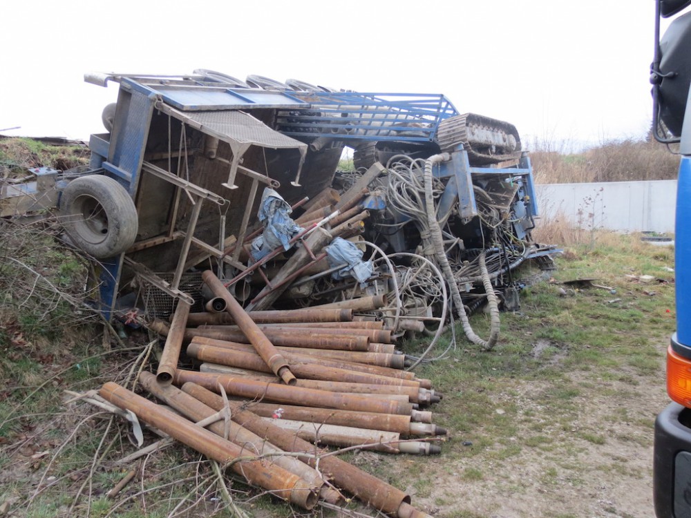 Řidič před jízdou nedostatečně zapojil přívěs. Ten vyjel mimo vozovku a převrátil se na bok