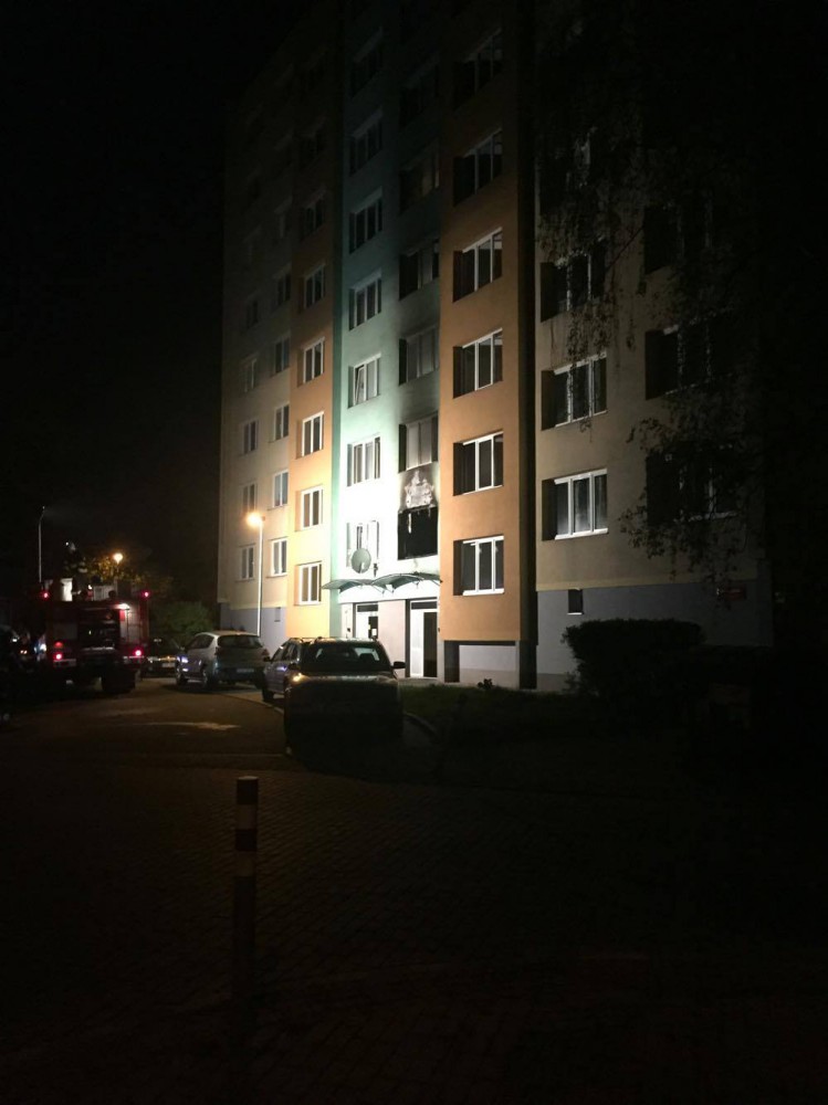 Budějčtí hasiči likvidovali ve středu večer požár panelového bytu, majitelka se nadýchala zplodin