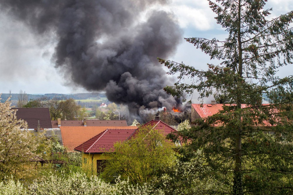 V Lišově hoří truhlářská dílna, oheň se rozšířil i na vedlejší objekt