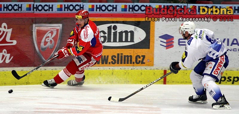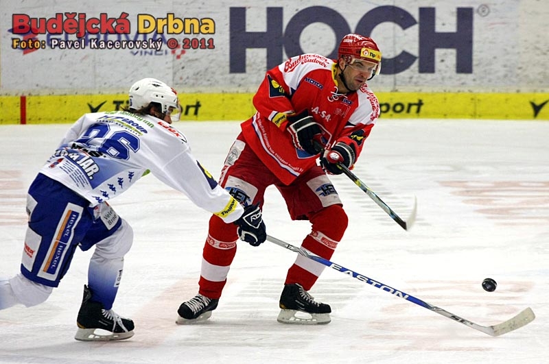 Pavel Kašpařík přihrává přes Jaroslava Svobodu