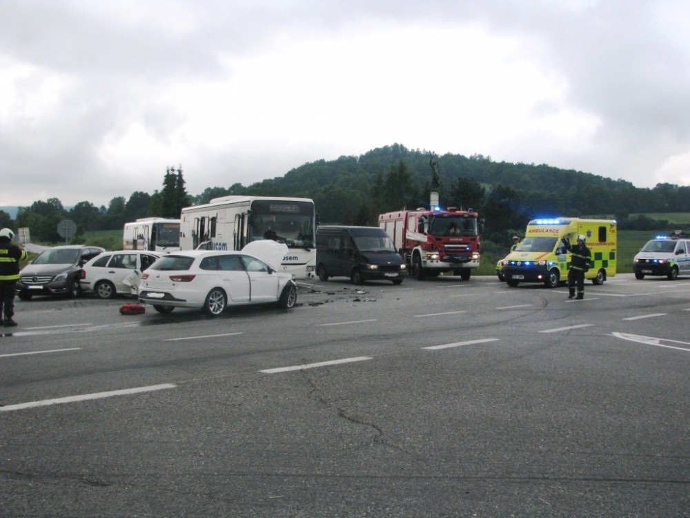 U Vitějovic havaroval autobus a tři osobní vozy, nejméně práce měli záchranáři