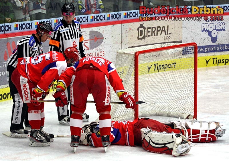 František Ptáček dal svůj třetí gól v sezoně. Jako první k němu dorazil gratulant Aleš Kotalík