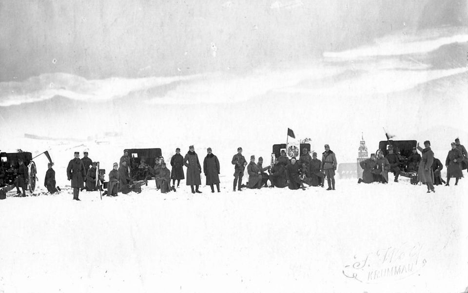 Českoslovenští dělostřelci v palebném postavení nad Českým Krumlovem 29. listopadu 1918