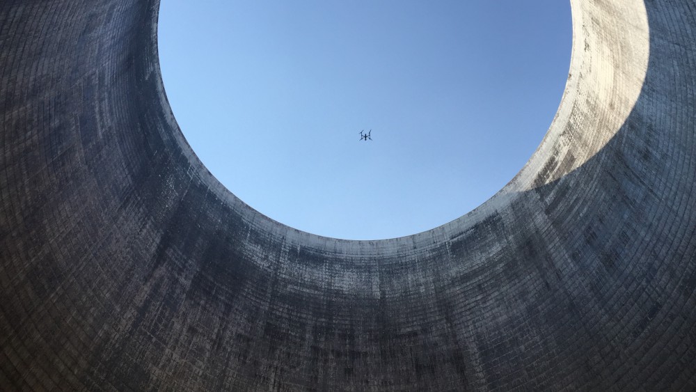 Mimo chladicí věž vzlétl dron až na třetí pokus