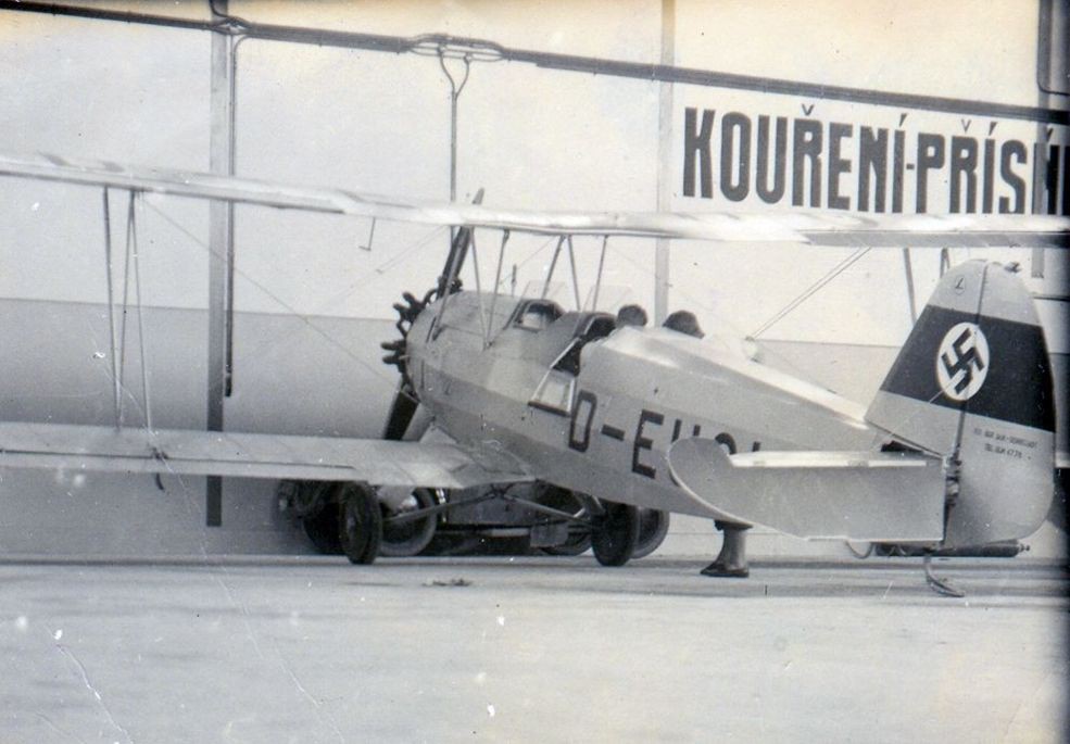 Německý letoun Fw-44, který byl 27. června 1938 přinucen přistát na letišti v Plané.