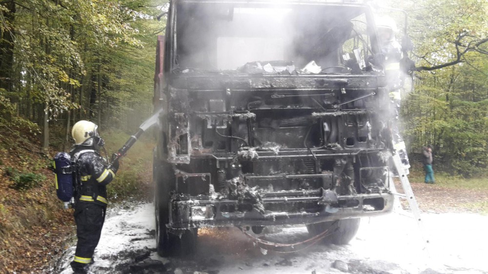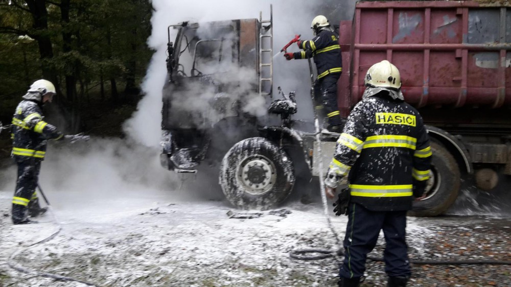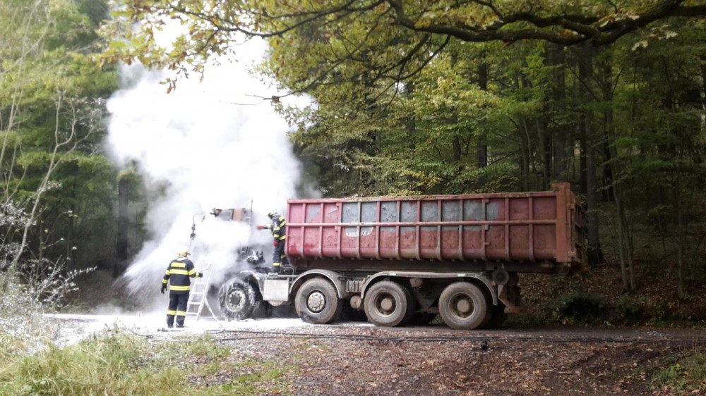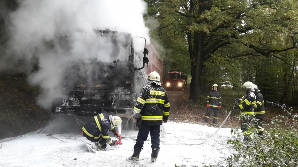 U Českého Krumlova hořel v pátek kamion, řidič vyvázl bez zranění