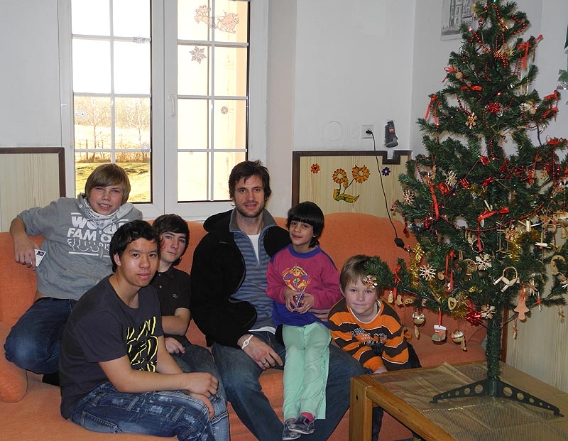 Martin Podlešák v obležení dětí z Dětského domova Boršov, které mu ukázali své pokoje