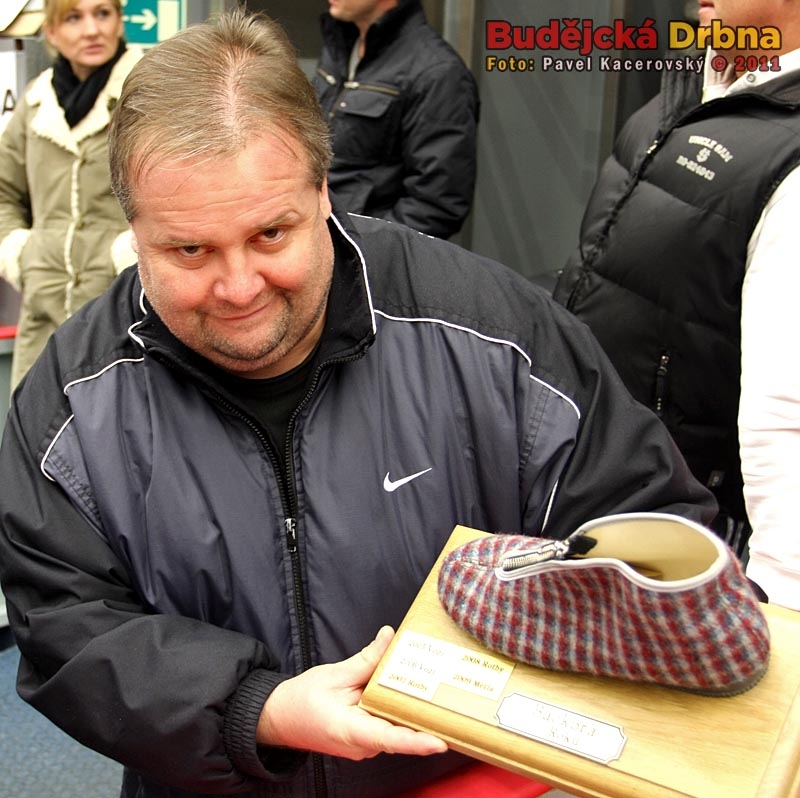 Jan Budějcký s Bačkorou roku, kterou letos získal Ladislav Volešák