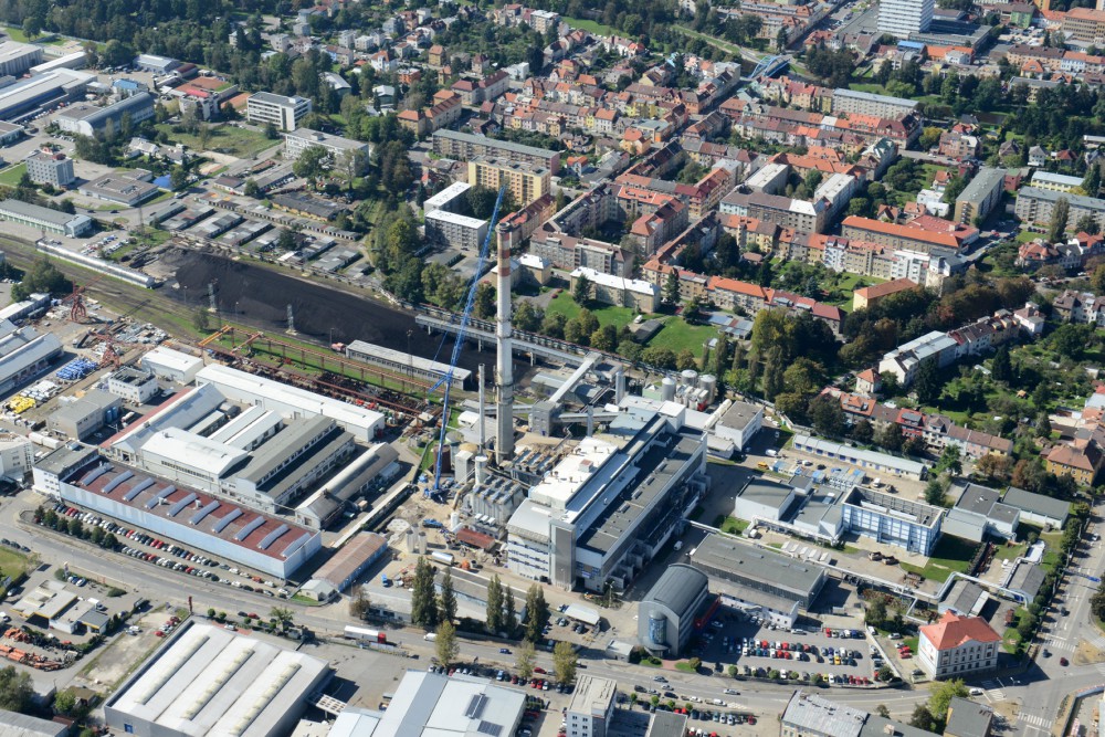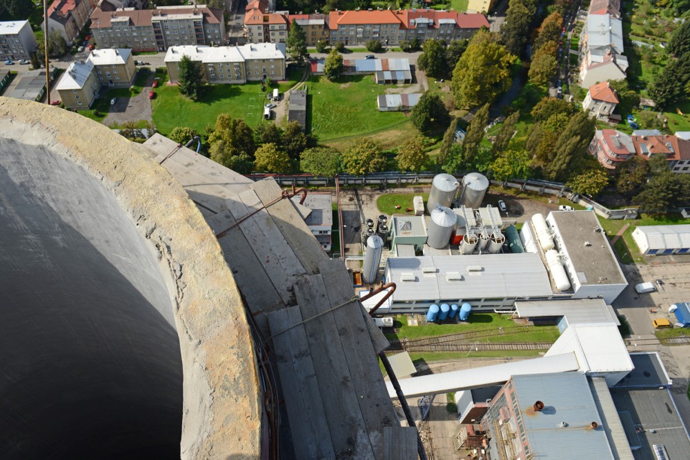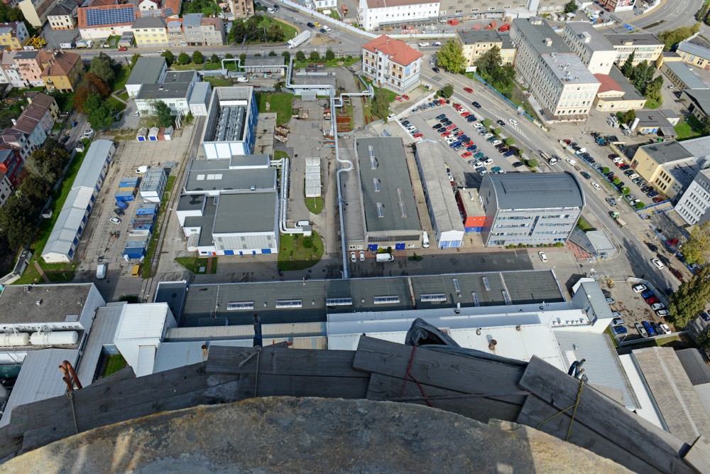 České Budějovice objektivem Milana Bindera a perem Martina Maršíka: při pohledu na teplárenský komín zvedáme hlavu, jak ale vypadá, když na něj koukáme svrchu?