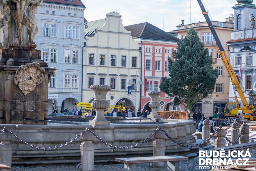 Na náměstí Přemysla Otakara II. byl přivezen vánoční strom