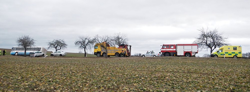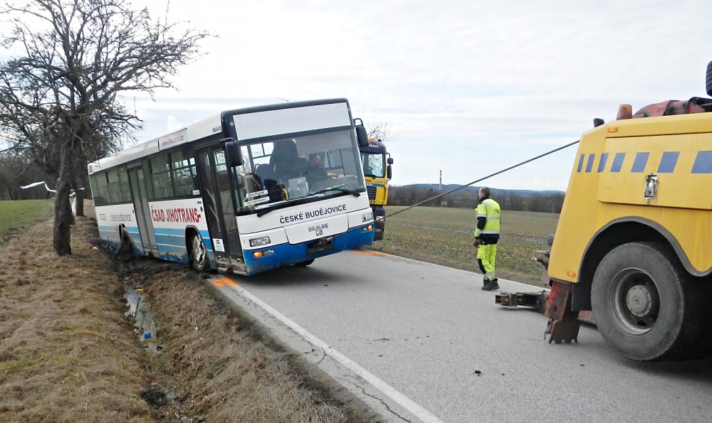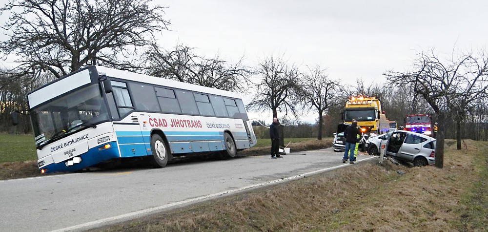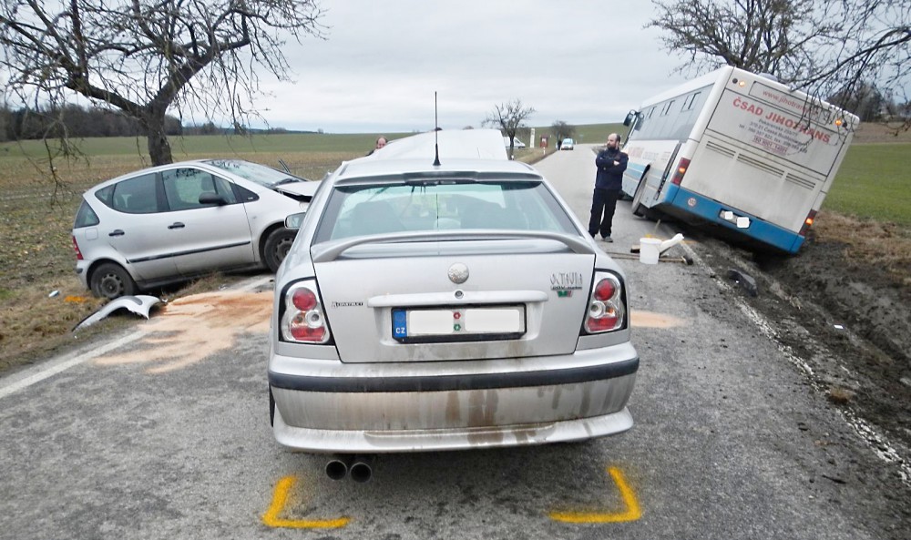 Dvě nehody na jednom místě. Nejdříve v Netěchovicích havaroval autobus, pak se tam srazila dvě osobní auta