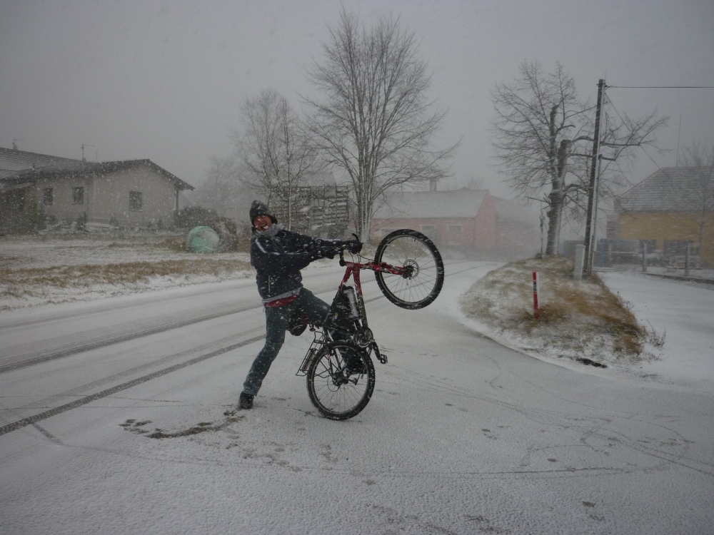 Sněhová bouře zastihla cyklisty při výletě u Adamova. Foto: Mikuláš Zvánovec