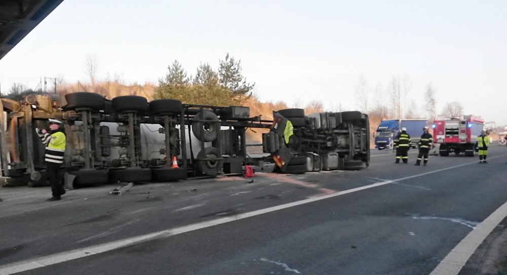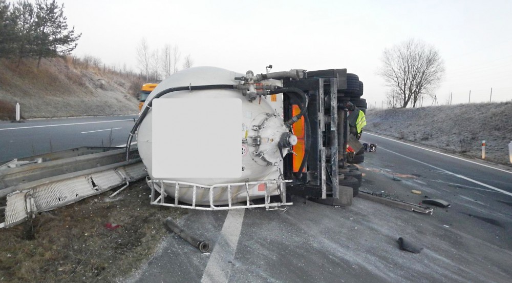 Převrácená cisterna na dálnici D3 u Tábora..