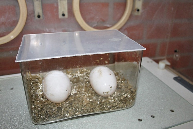 Dvě vejce gaviálů jsou v inkubátoru přímo v expozici zoo.