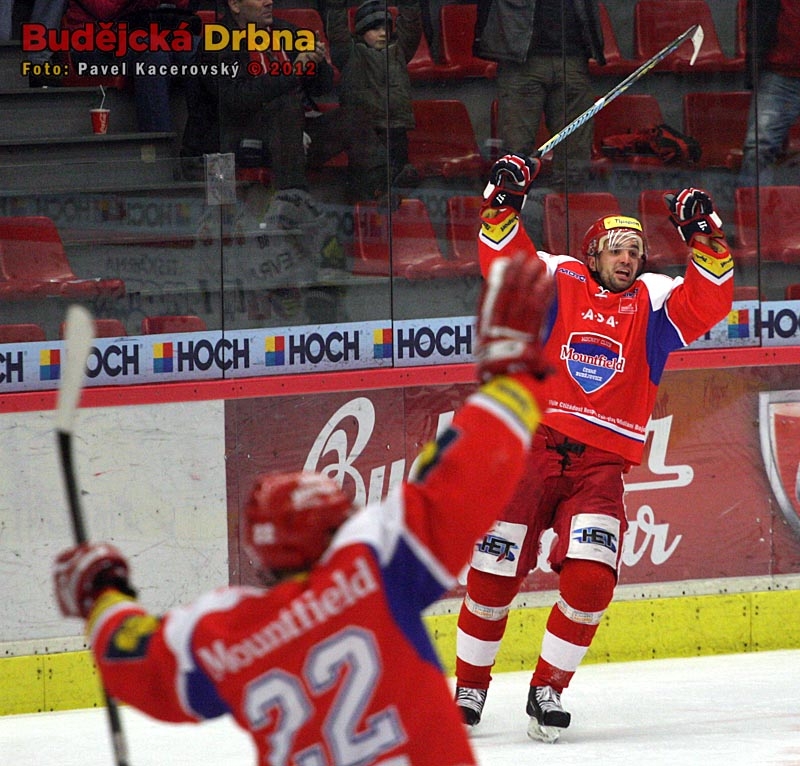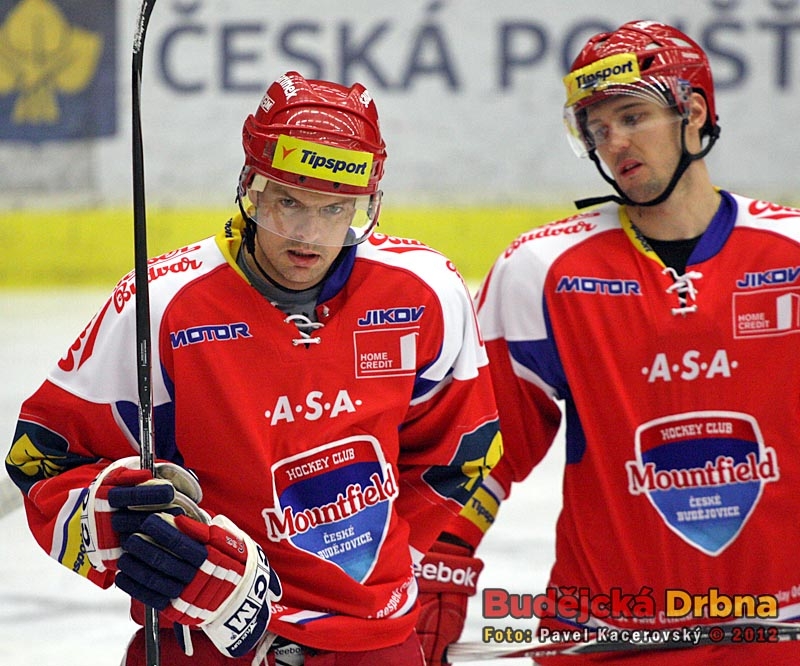 Nová tvář HC Mountfield Tomáš Horna (vlevo vedle Aleše Kranjce)