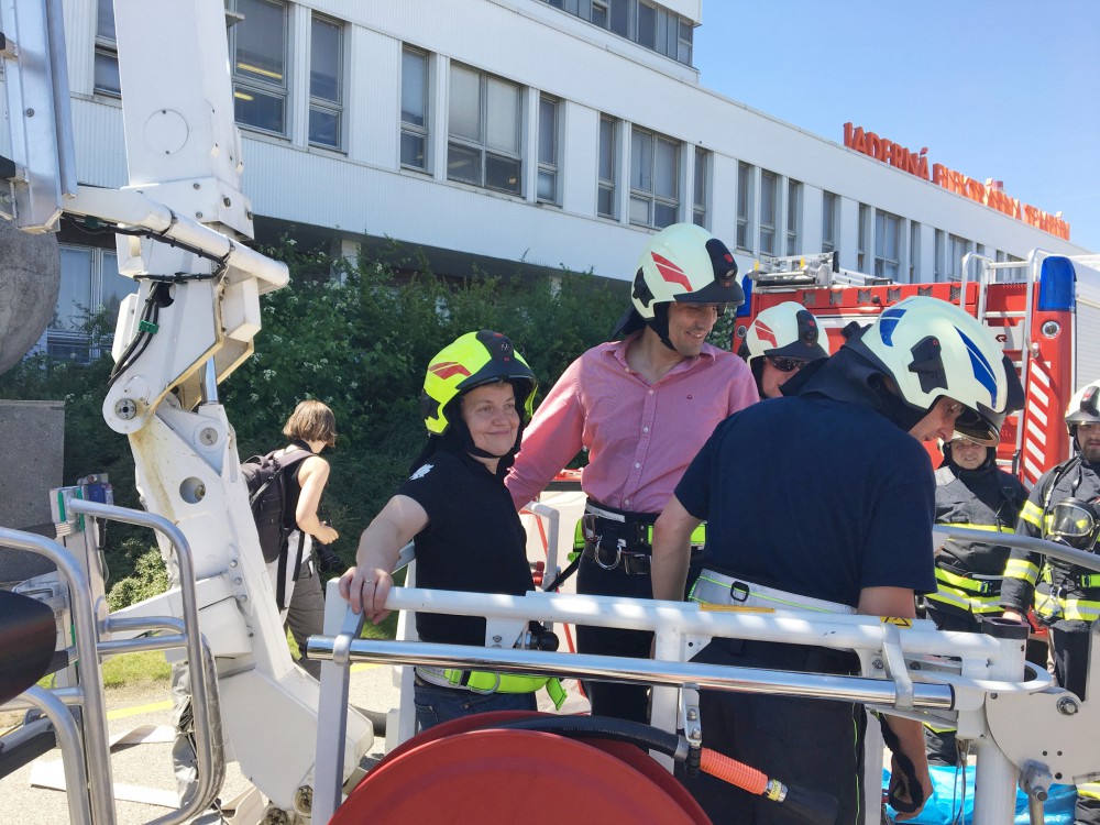 Evakuační rukáv si vyzkoušela i předsedkyně jaderného dozoru Dana Drábová a temelínský ředitel Bohdan Zronek