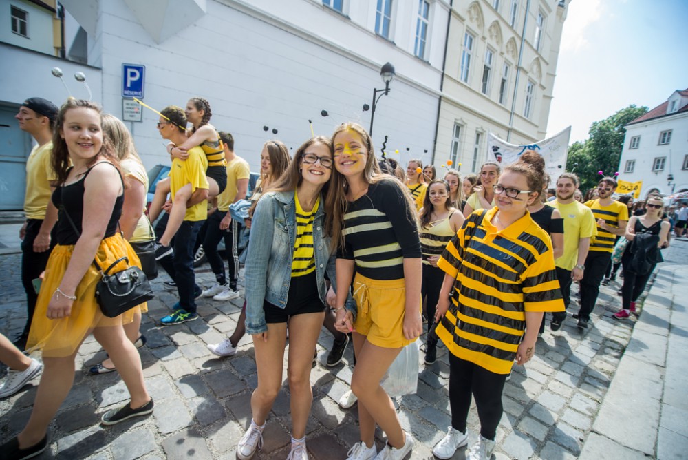 VIDEO: Budějce hrály barvami. Majálesový průvod obsadil centrum města