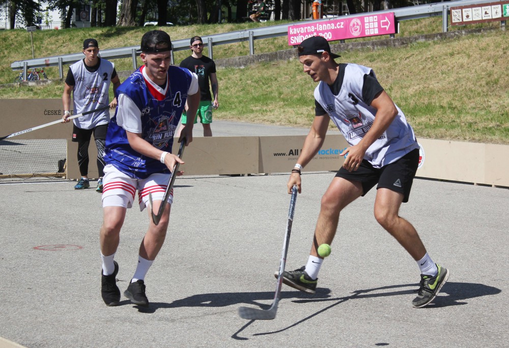 Pouliční hokej se v odobě kvalifikačního turnaje Red Bull Urban Buly vrátil do Českých Budějovic. Snímek je ze čtvrtfinálového utkání mezi Dlouhoprsťáky z Berouna (v šedých dresech) a českobudějovickým HC Kožaci.