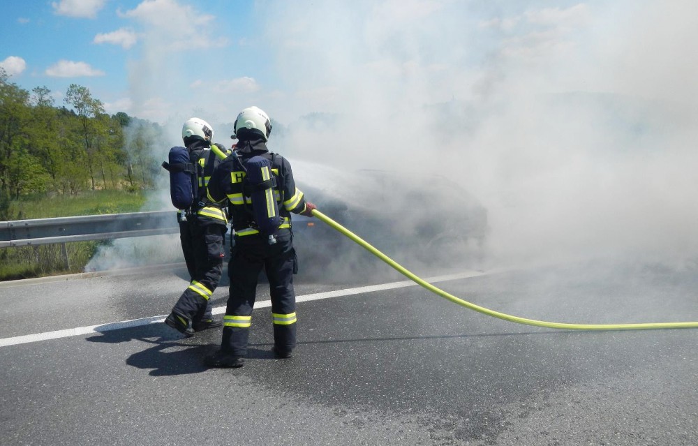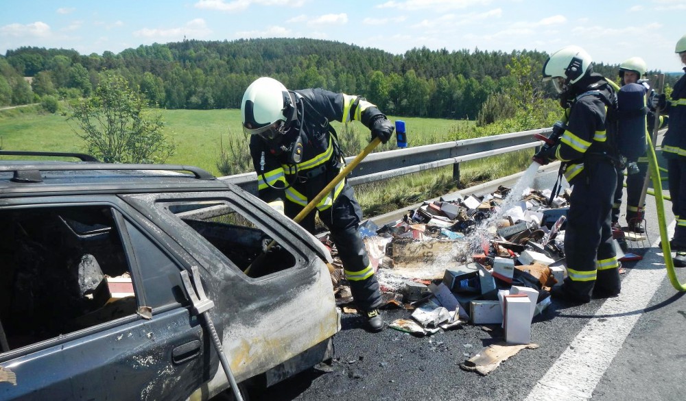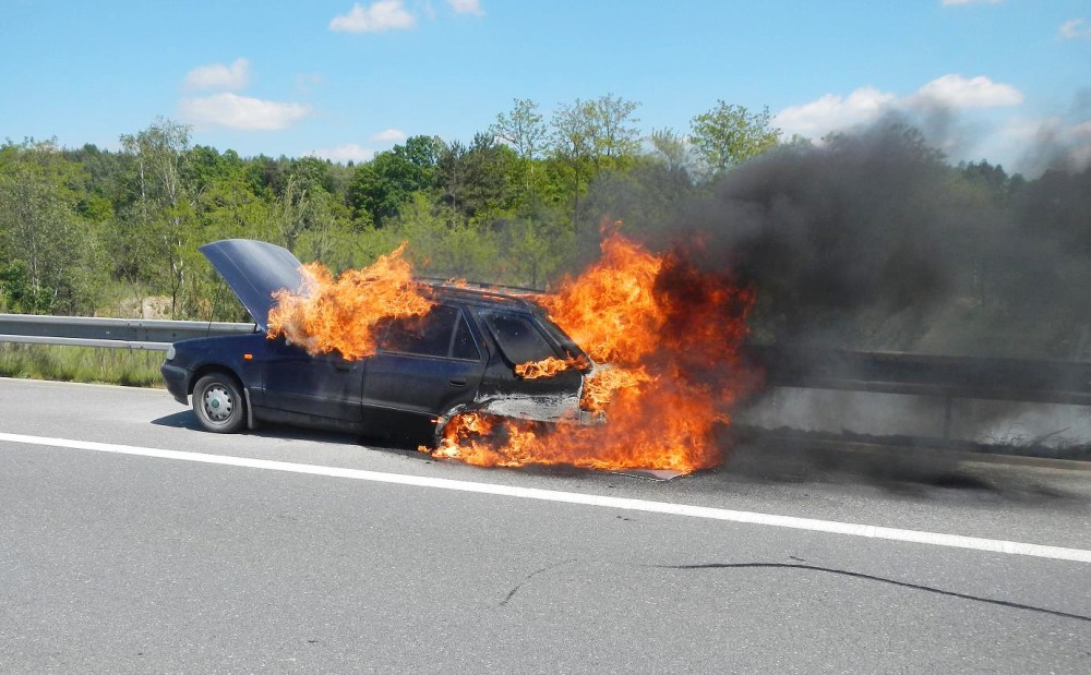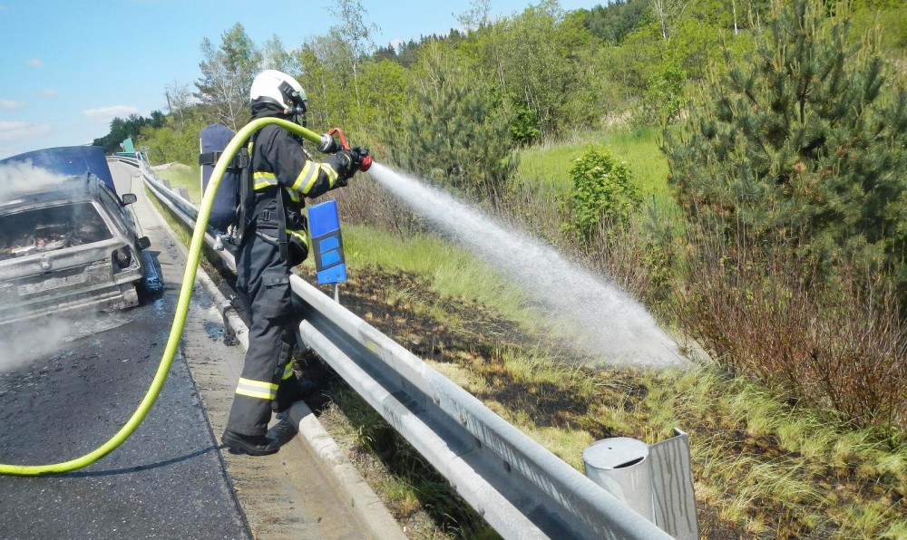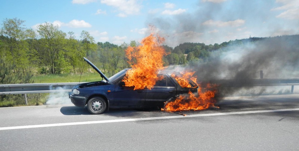 Na dálnici u Chotovin shořelo osobní auto