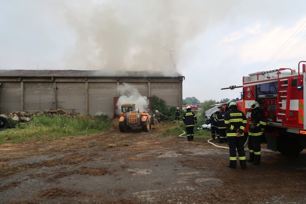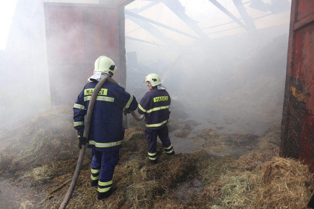Požár skladu se senem a hnojivy v Jistebnici na Táborsku.