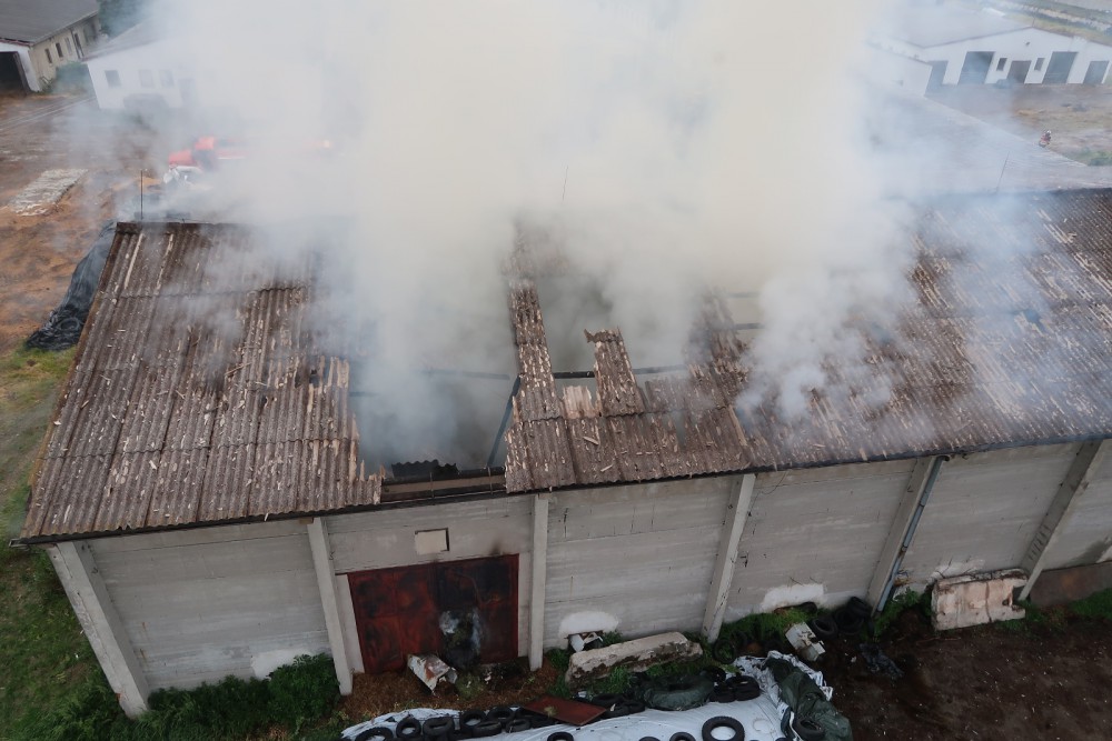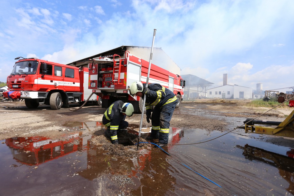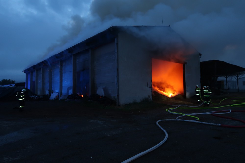 Hasiči na Táborsku likvidují požár skladu se senem a dusíkatými hnojivy