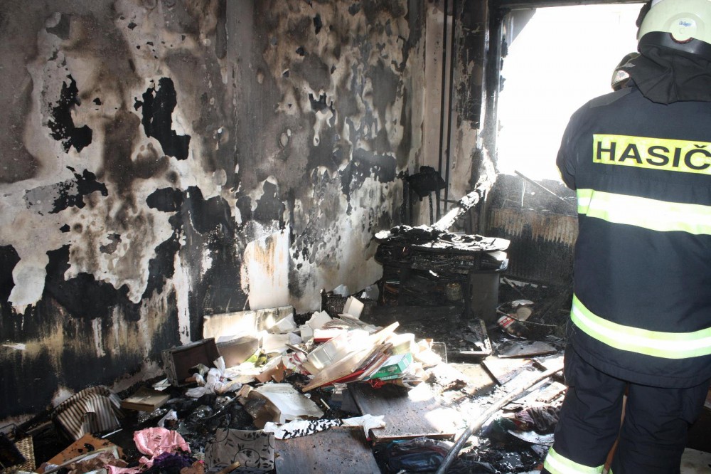 Požár bytu v ulici V. Volfa v Českých Budějovicích.