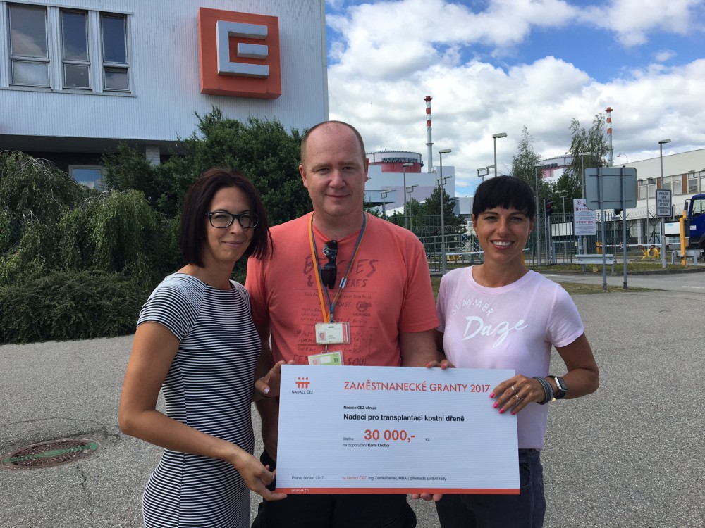 Dvojnásobný dárce kostní dřeně Karel Lhotka předal šek představitelkám Nadace pro transplantaci kostní dřeně