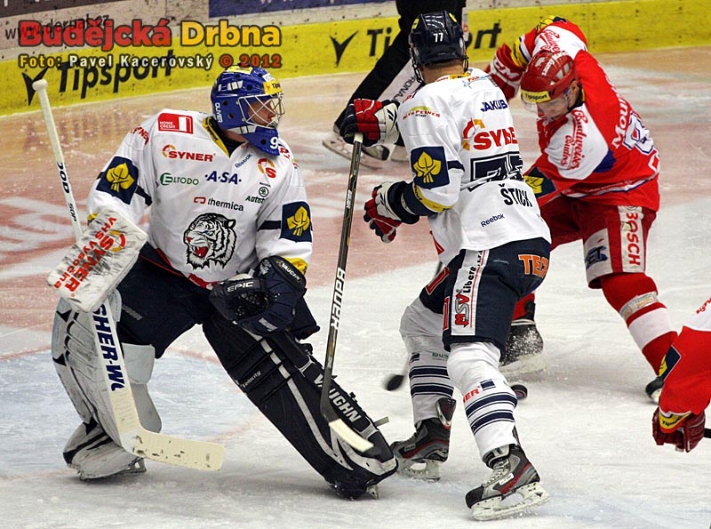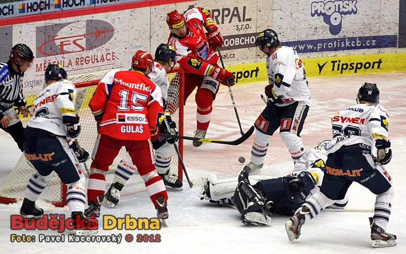 Marný budějcký útok před osamoceným gólmanem Pincem