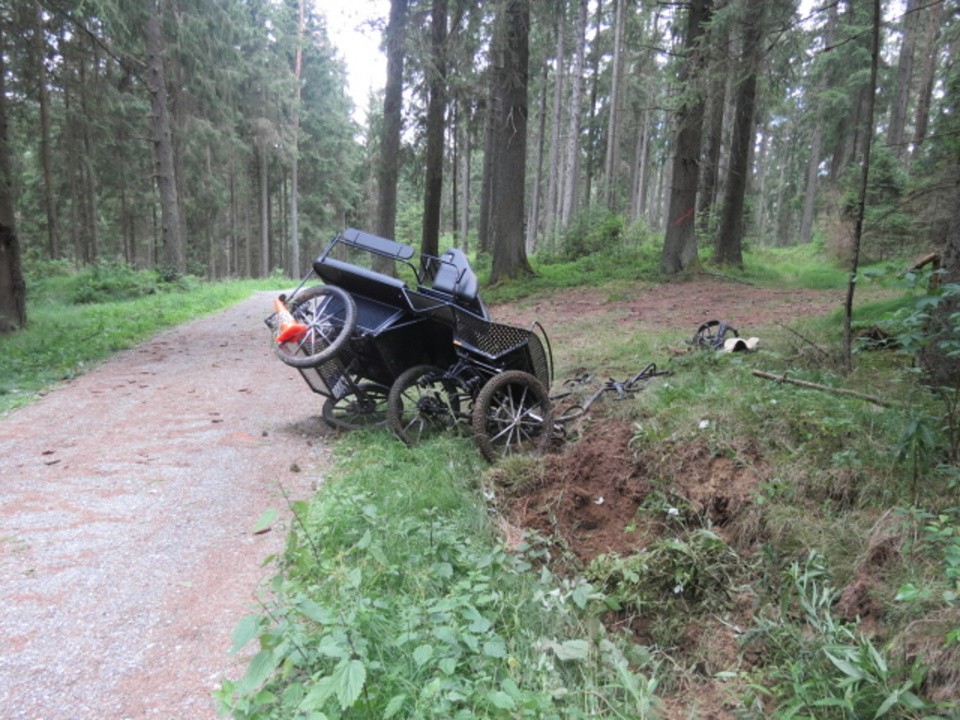 Policisté řešili havárii dvouosého kočáru taženého koněm