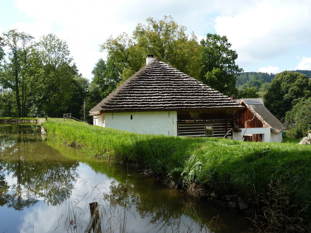 Vodní mlýn Hoslovice, pohled od rybníka