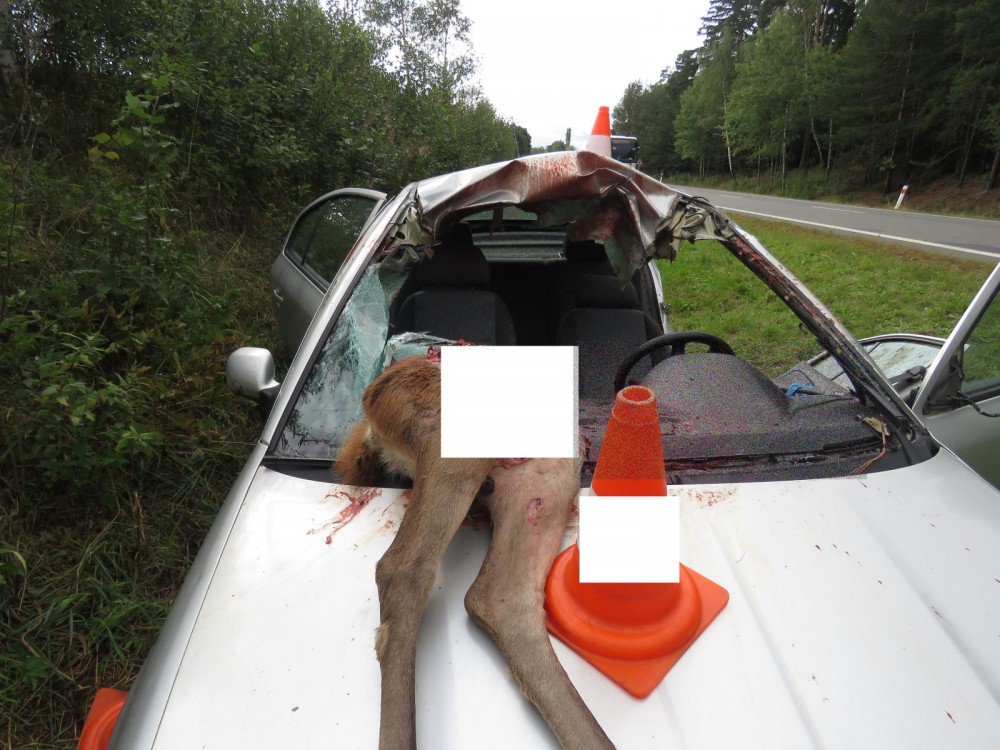 Laň skočila do cesty, řidič střetu s ní nezabránil. Utrpěl těžká zranění