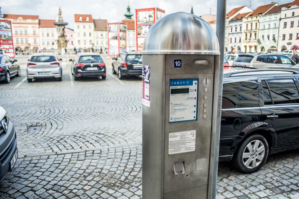 Parkovací automat na náměstí Přemysla Otakara II. v Českých Budějovicích.