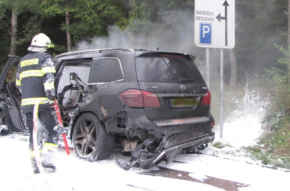 V Kaplici shořelo luxusní auto. Škoda se vyšplhala na milion a půl korun