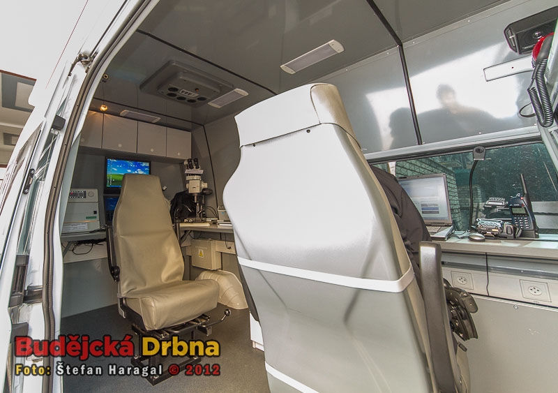 Praporčík Radek Polák předvádí vybavení schengenbusu