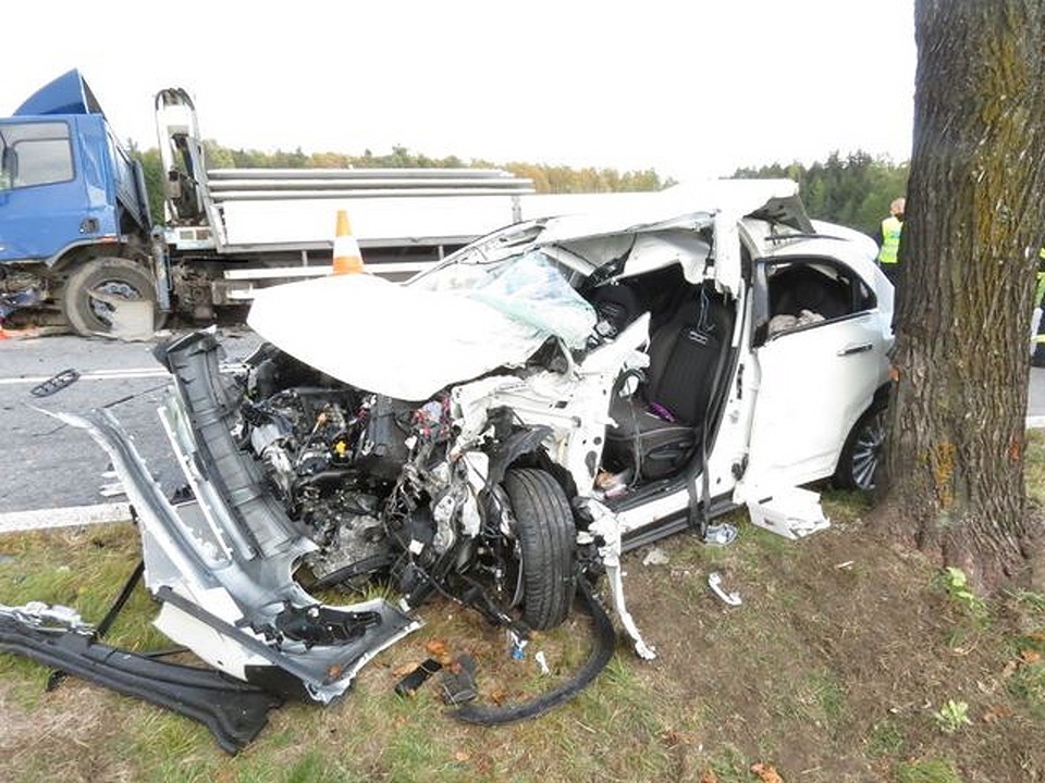Při srážce osobního auta s náklaďákem se těžce zranili dva cizinci. Pro řidiče letěl vrtulník